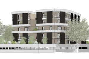 Le projet de construction de logement sur les ilots 5 et 17 de la ZAC Grenapin à St-Nazaire est porté par le Groupe Duval. Il comporte deux bâtiments de part et d’autre du Boulevard Émile Broodcoorens.